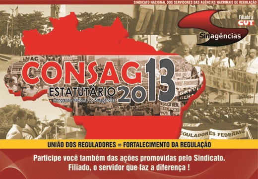 Entre os dias 1º e 5 de março, os filados ao Sinagências têm encontro marcado em Brasília. Neste período ocorre o CONSAG Estatutário da entidade – no Hotel Carlton (Setor Hoteleiro Sul, Quadra 5, Bloco G) -, quando serão discutidos, entre outros pontos, a conjuntura nacional e internacional, sua interface com a negociação e greve ocorrida em 2012 e perspectivas do espaço de lutas, negociação e acordos com o Governo para o período de 2013 a 2015.